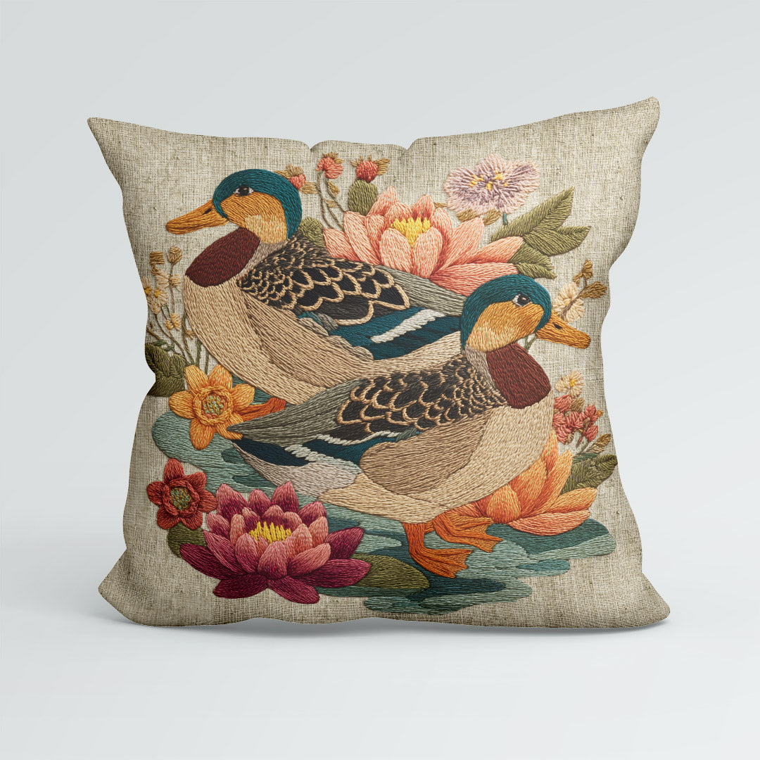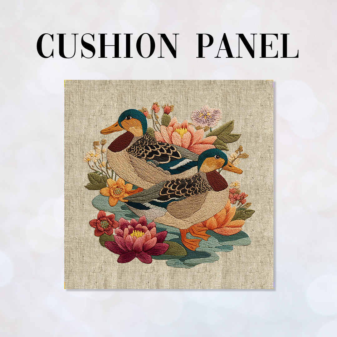 CUSHION Panel Ducks on Linen 2 CP-1058