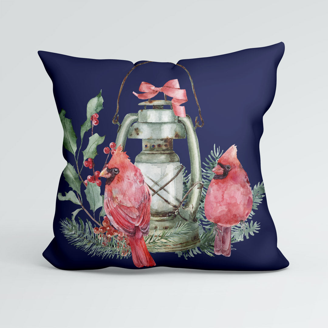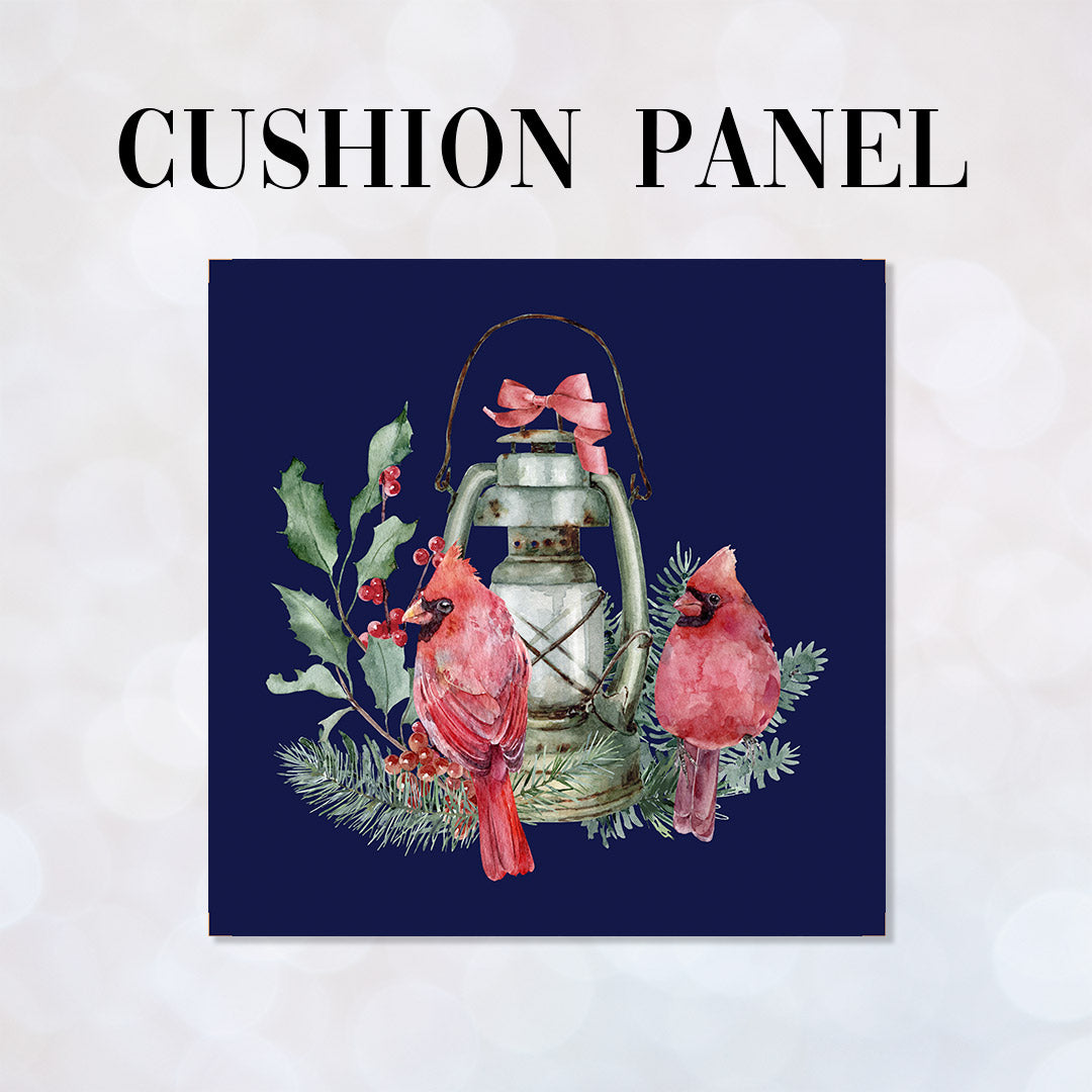 CUSHION Panel Christmas Cardinal Lantern Navy CP-771