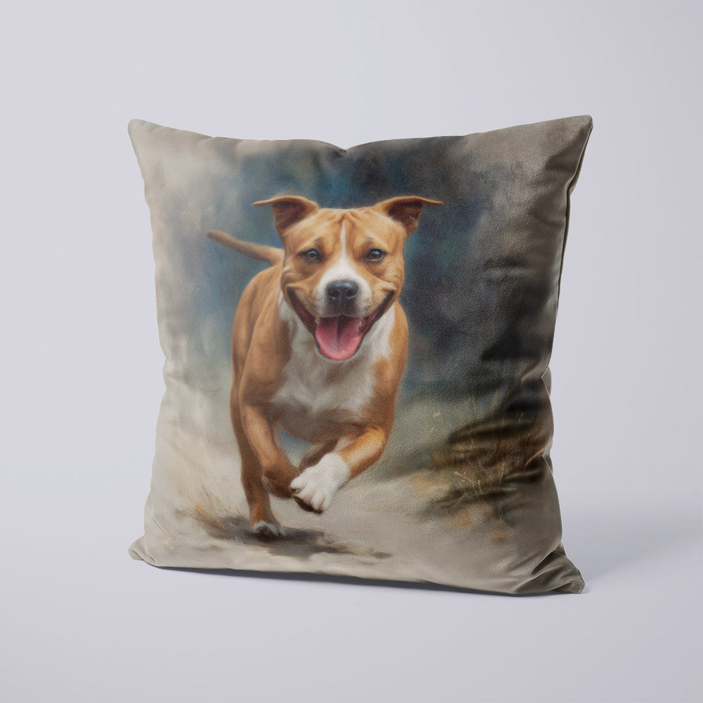 CUSHION Panel Running Staffordshire Bull Terrier CP-745