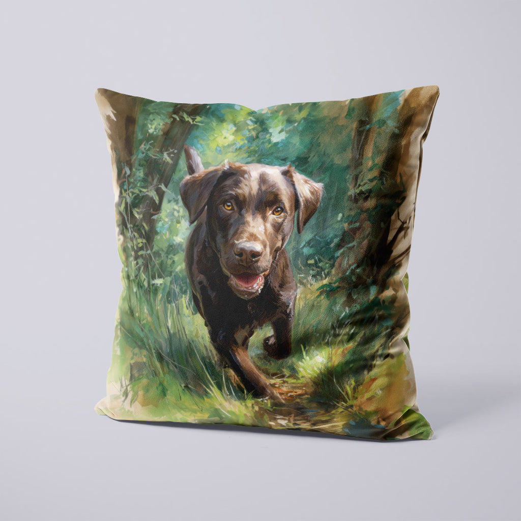 CUSHION Panel Chocolate Labrador in the Forest CP-839