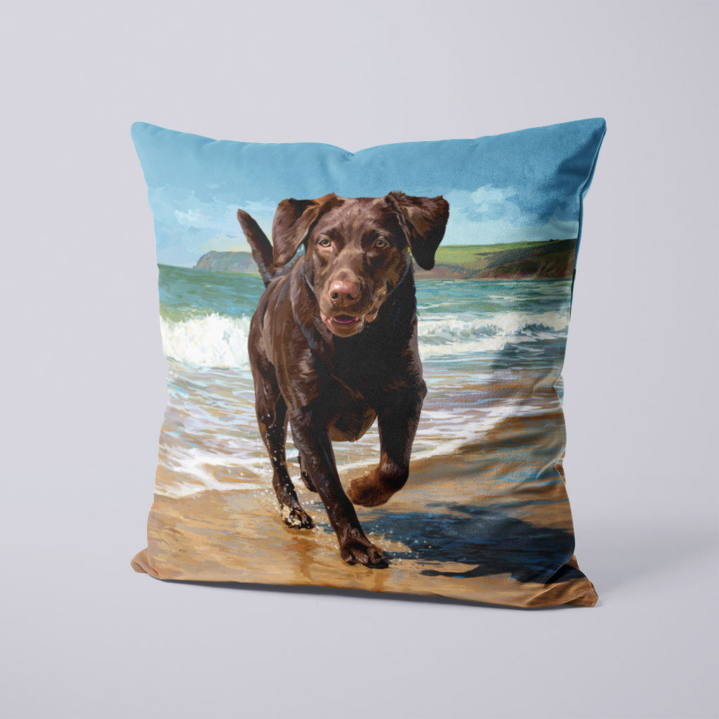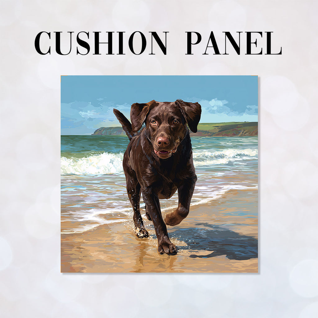 CUSHION Panel Chocolate Labrador on the Beach CP-840