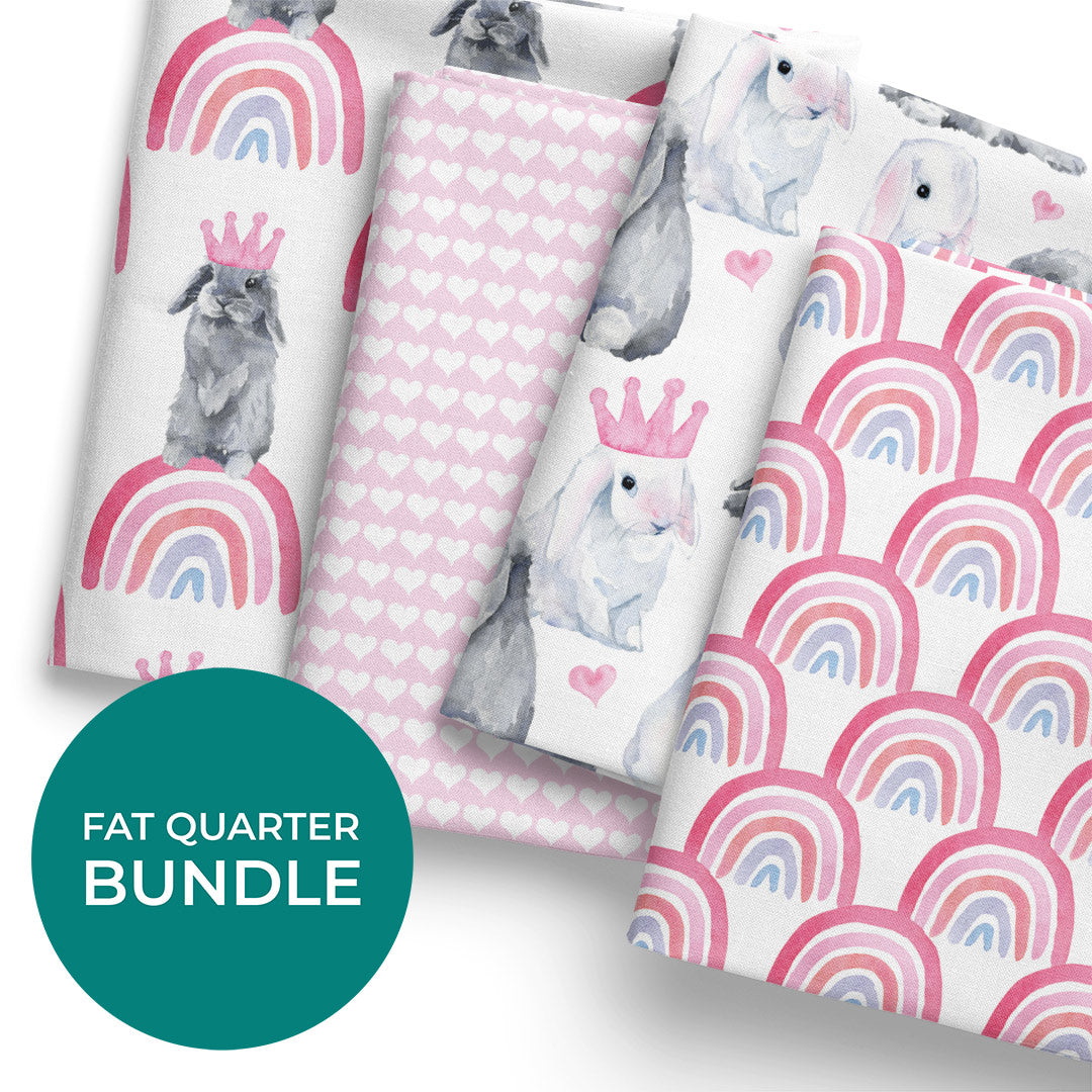 Fat Quarter Fabric Bundle Bunnies and Rainbows Pink - Waterproof CANVAS is backordered and will ship as soon as it is back in stock.