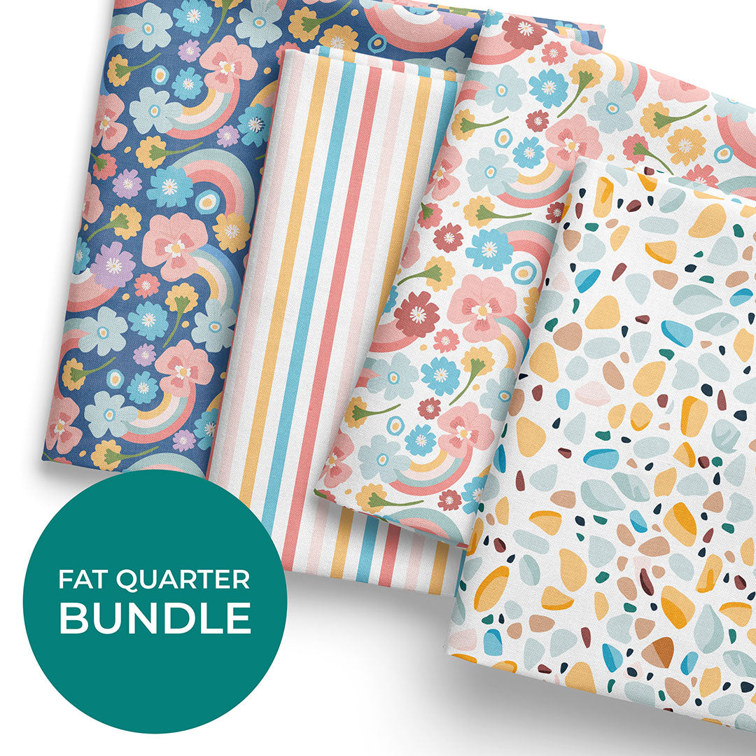Fat Quarter Fabric Bundle Rainbows and Flowers - Waterproof CANVAS is backordered and will ship as soon as it is back in stock.