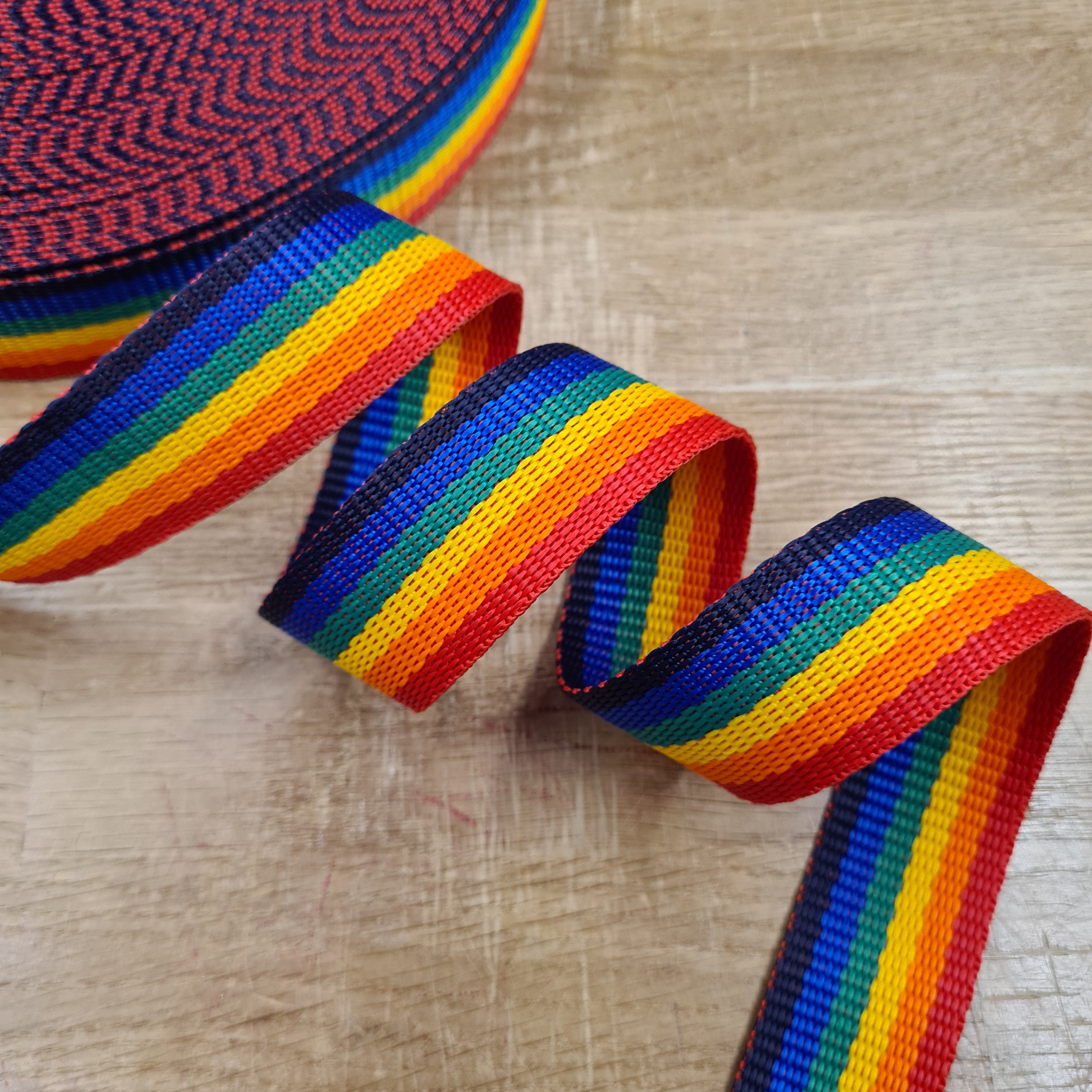 Webbing Tape Rainbow 30mm, priced per metre is backordered and will ship as soon as it is back in stock.