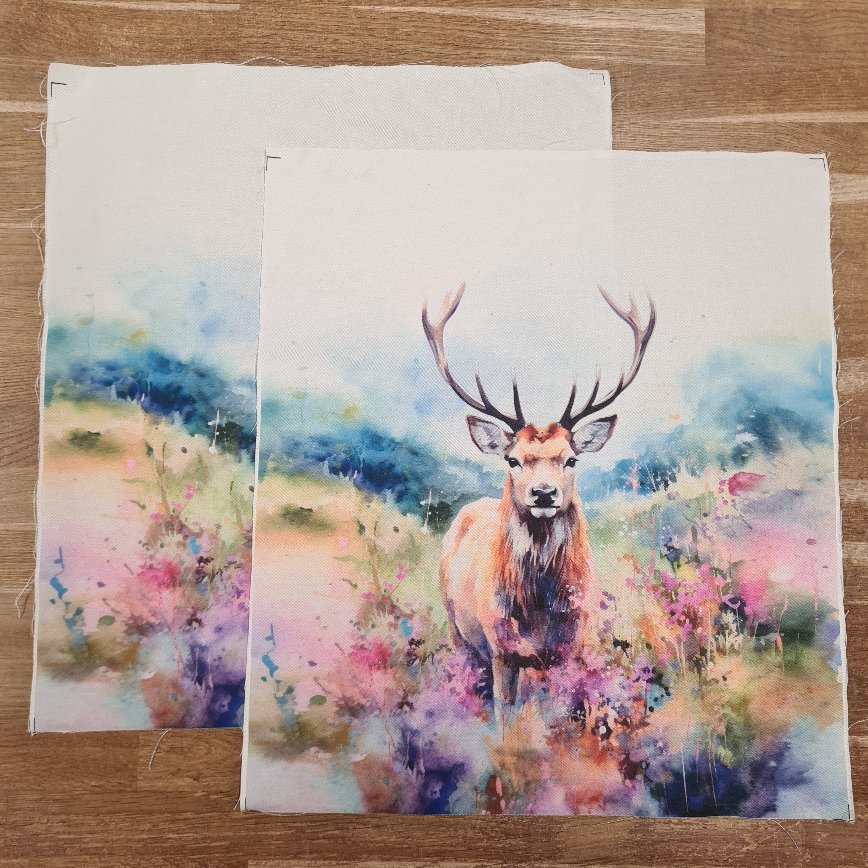 Watercolour Stag Cotton Drill Tote Panel Set is backordered and will ship as soon as it is back in stock.