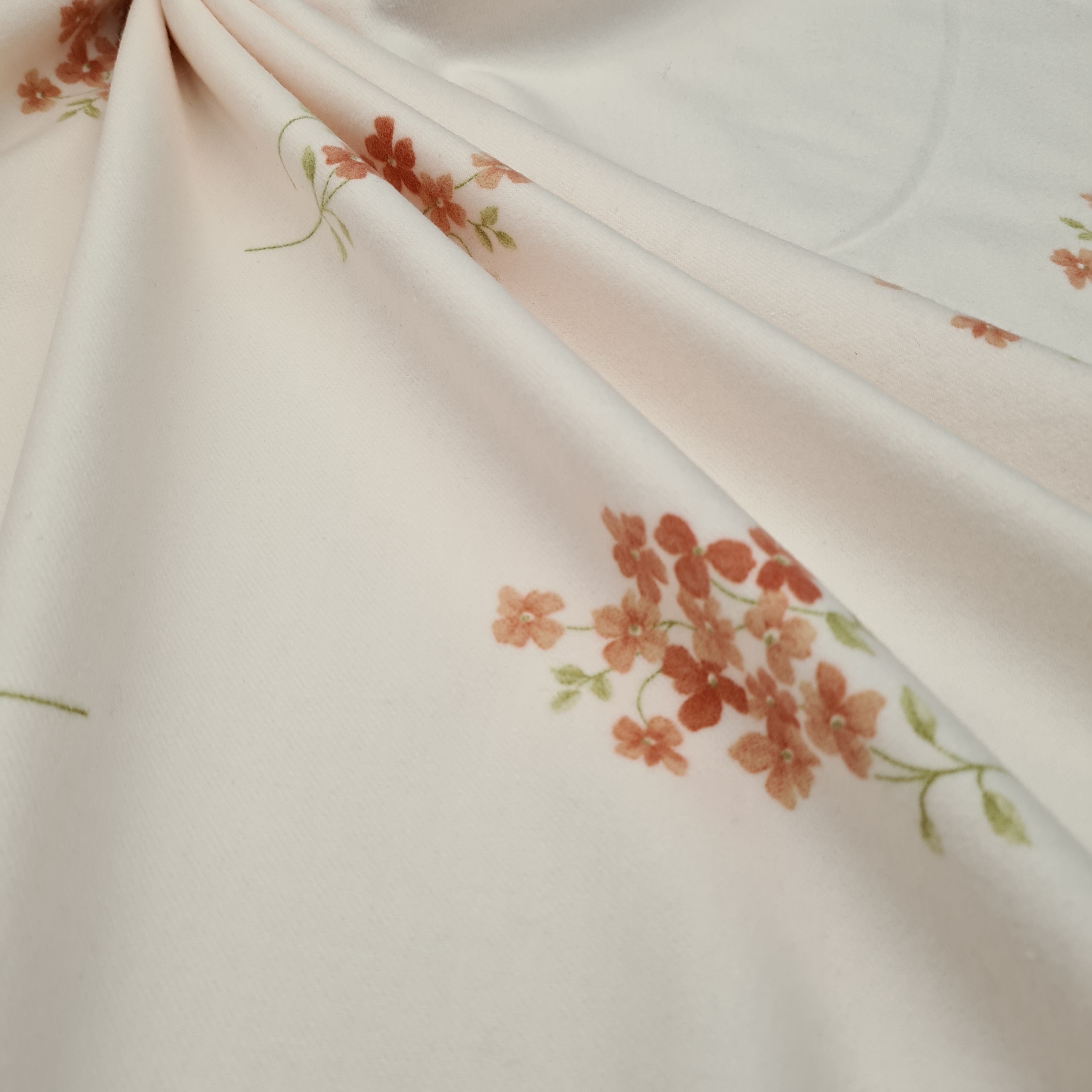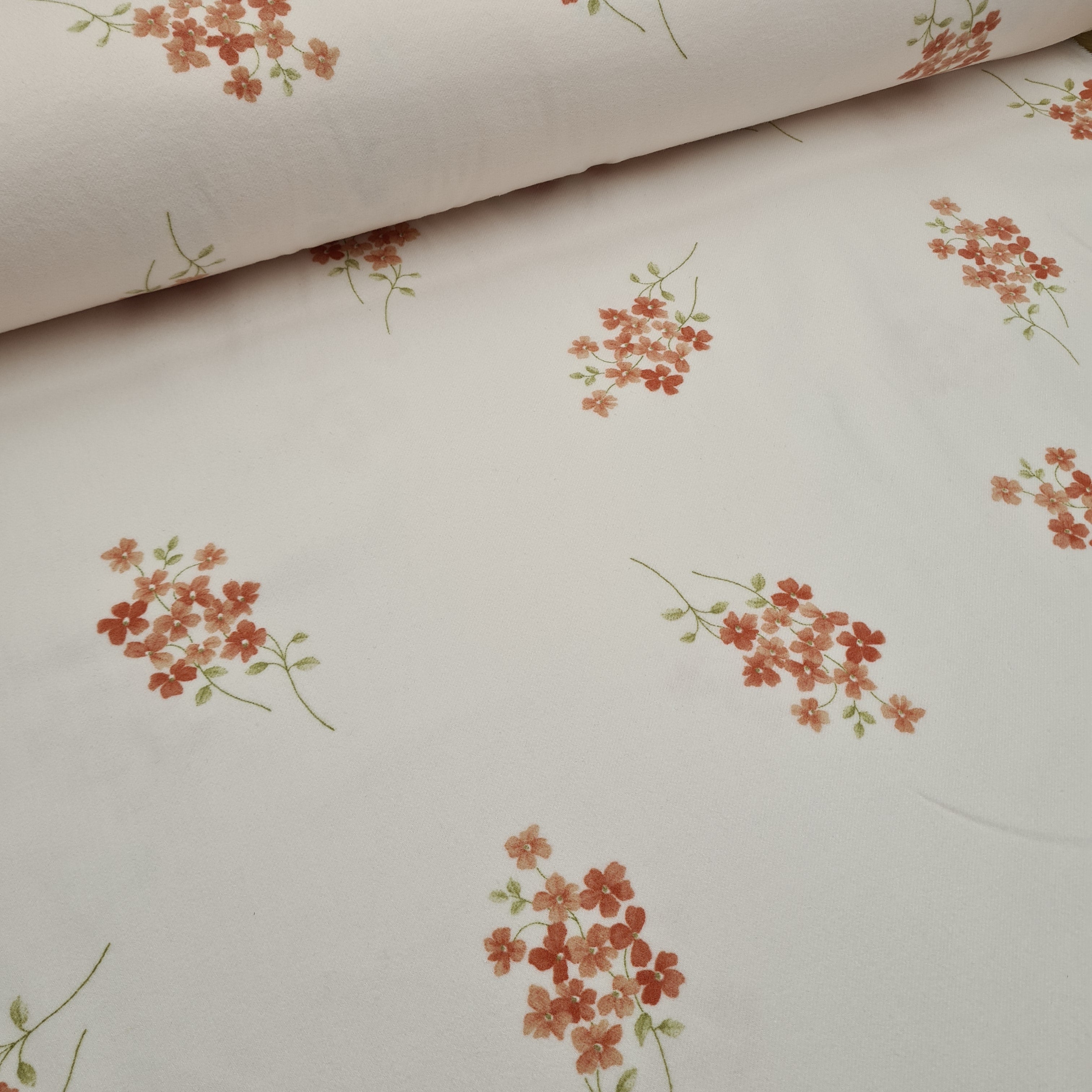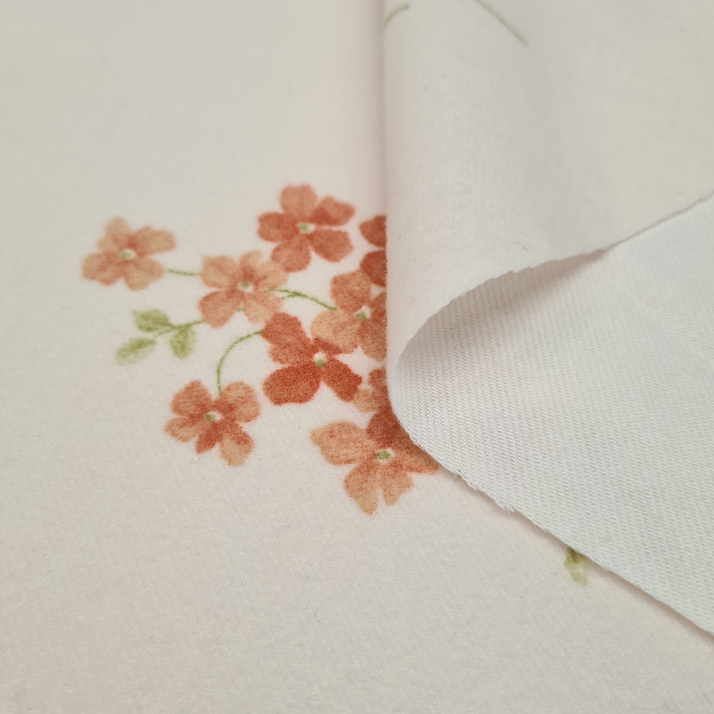 Beautiful brushed cotton with floral print on light pink background. Super soft, medium weight.