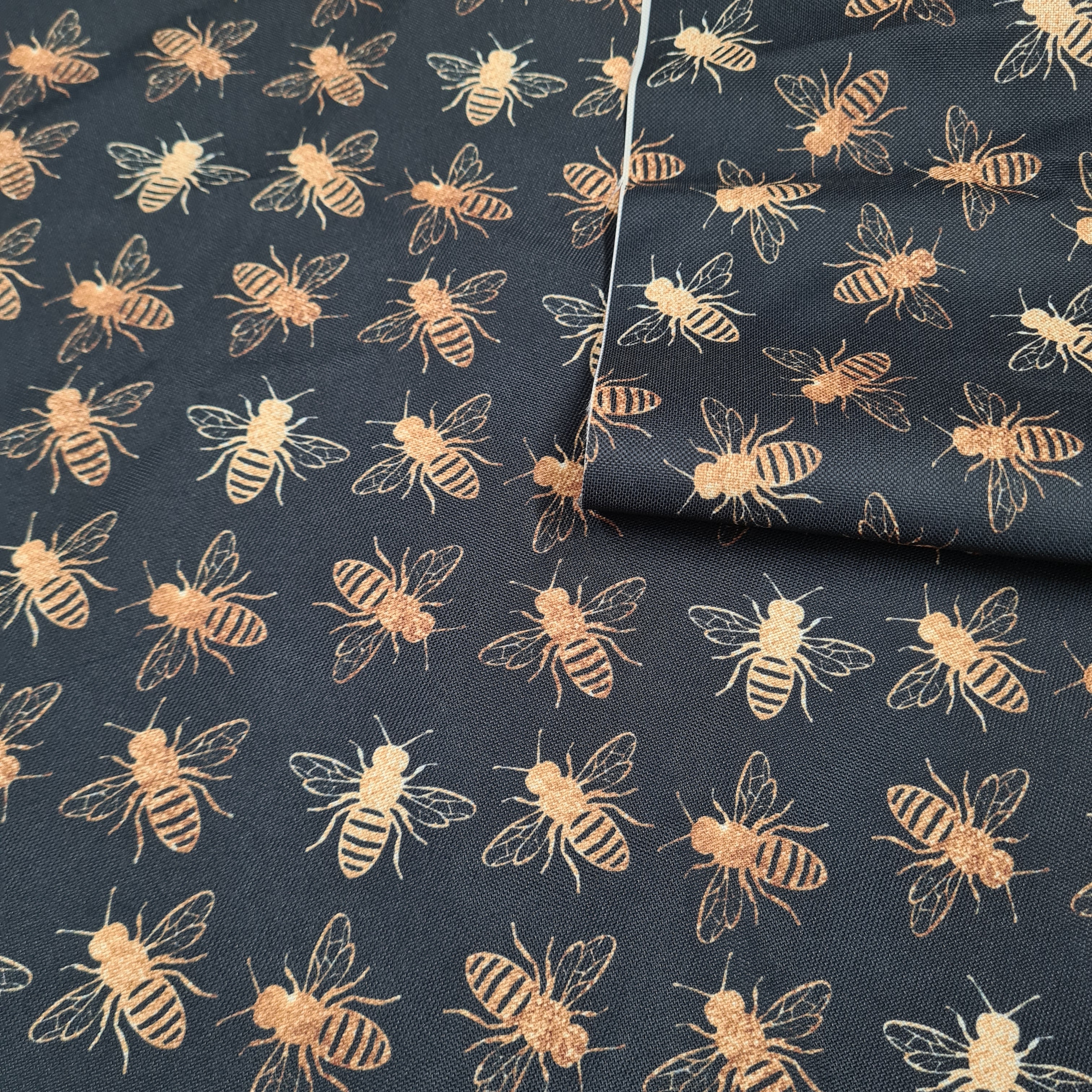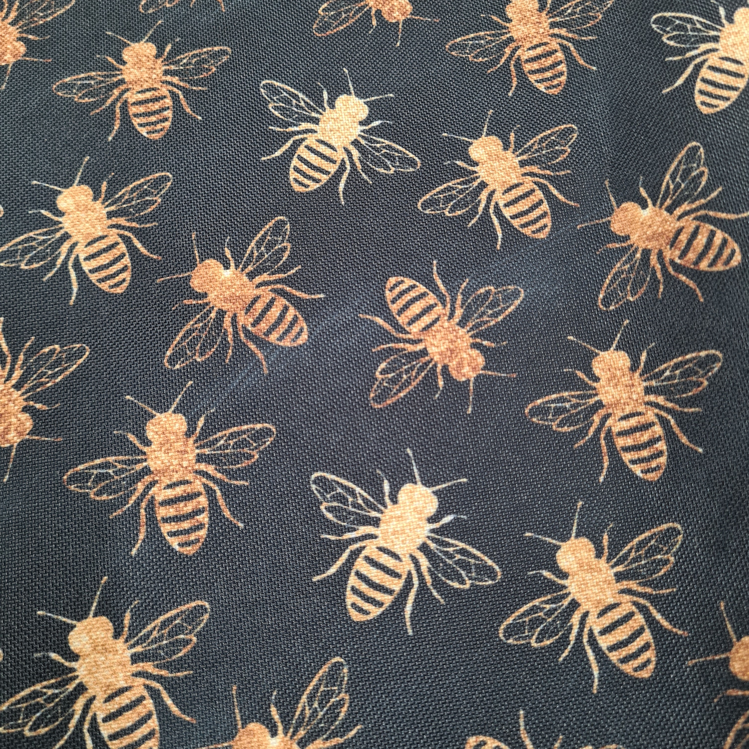 Flawed Bees Black Waterproof Canvas, remnant 50cm