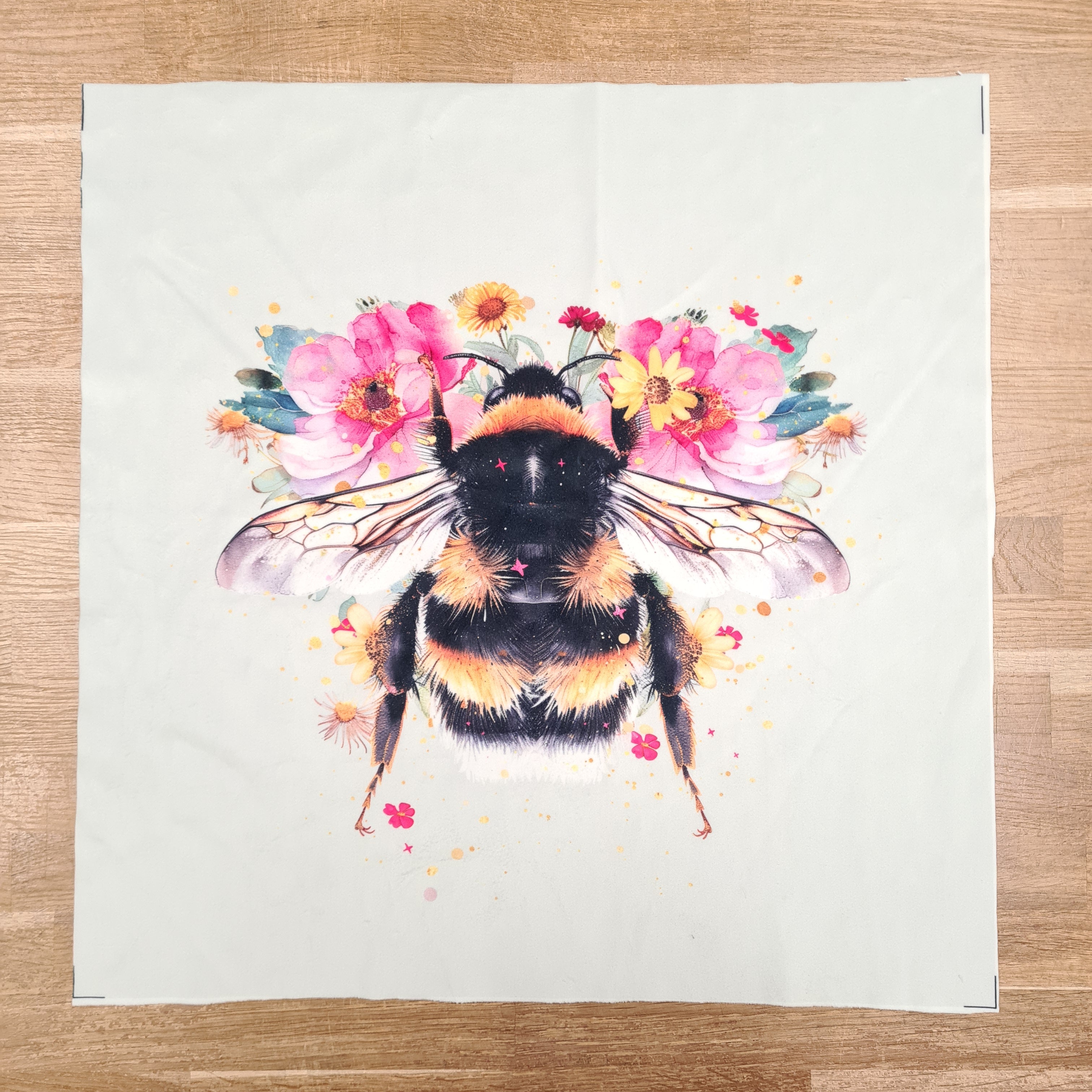 Floral Bee On Mint French Velvet Cushion Panel 50x50cm