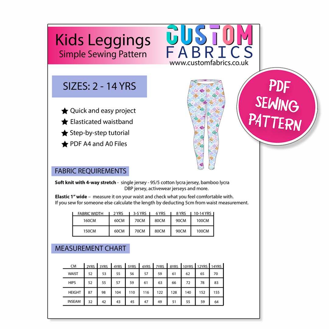 Kids Leggings PDF Digital Sewing Pattern Sizes 2yrs- 14yrs
