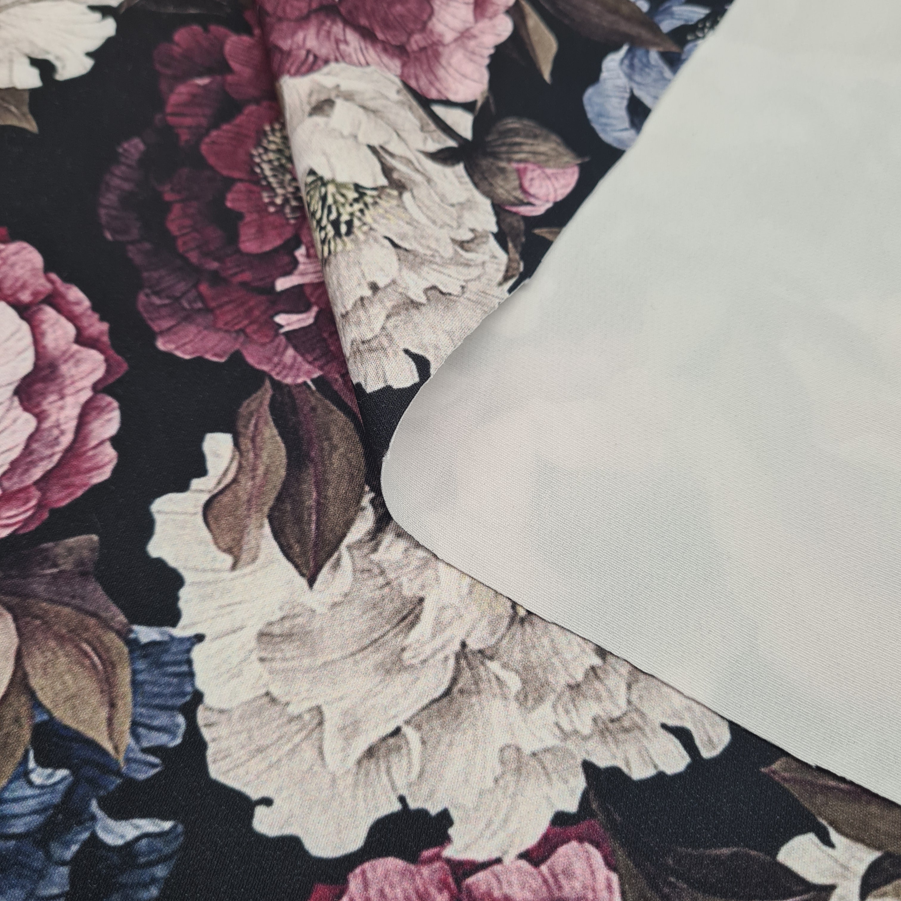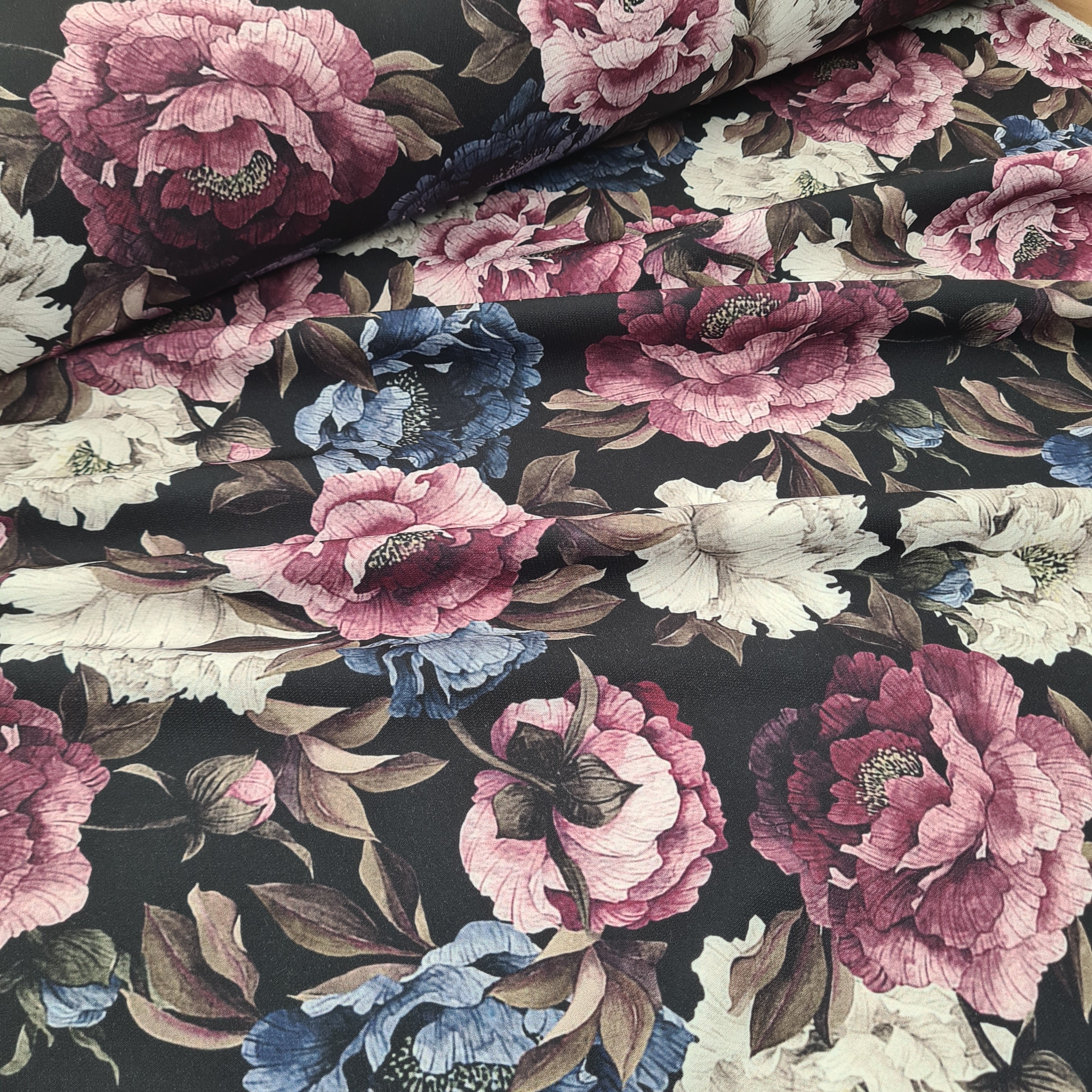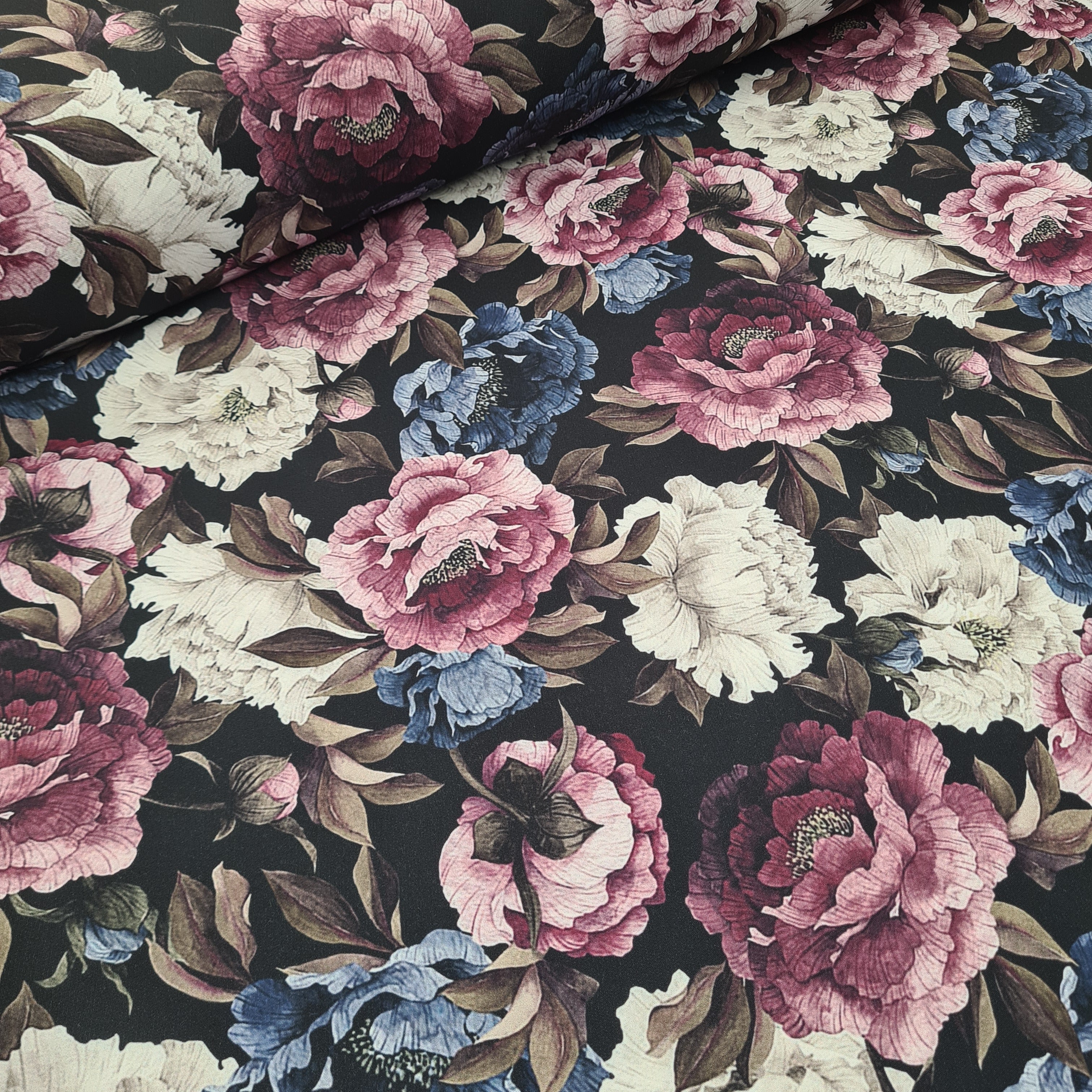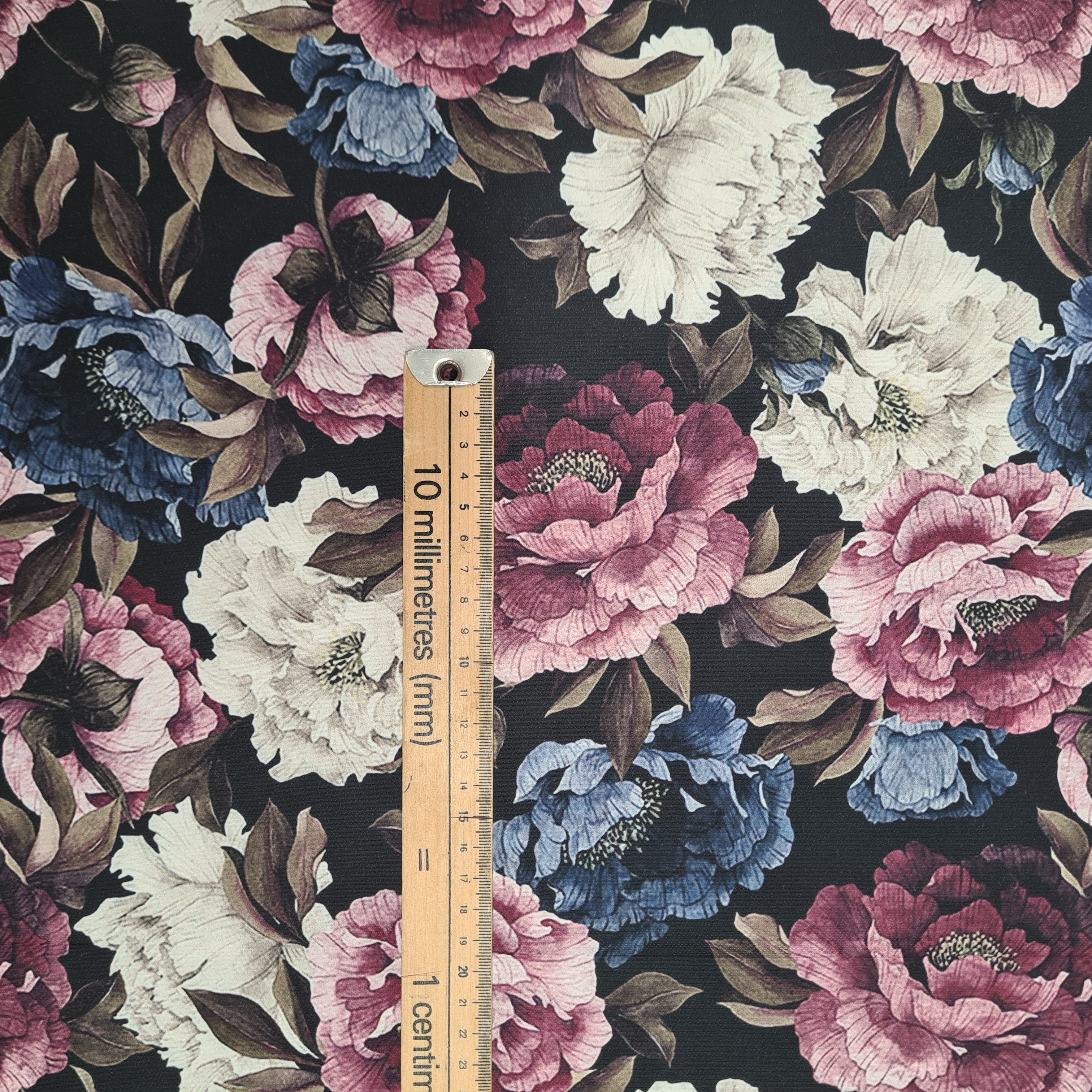 Elegant Peonies Stretch Marchiano Crepe, priced by half metre
