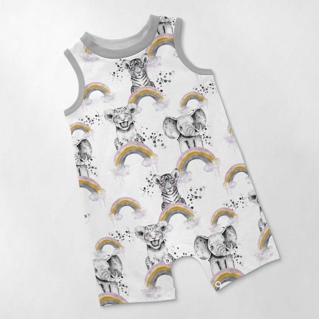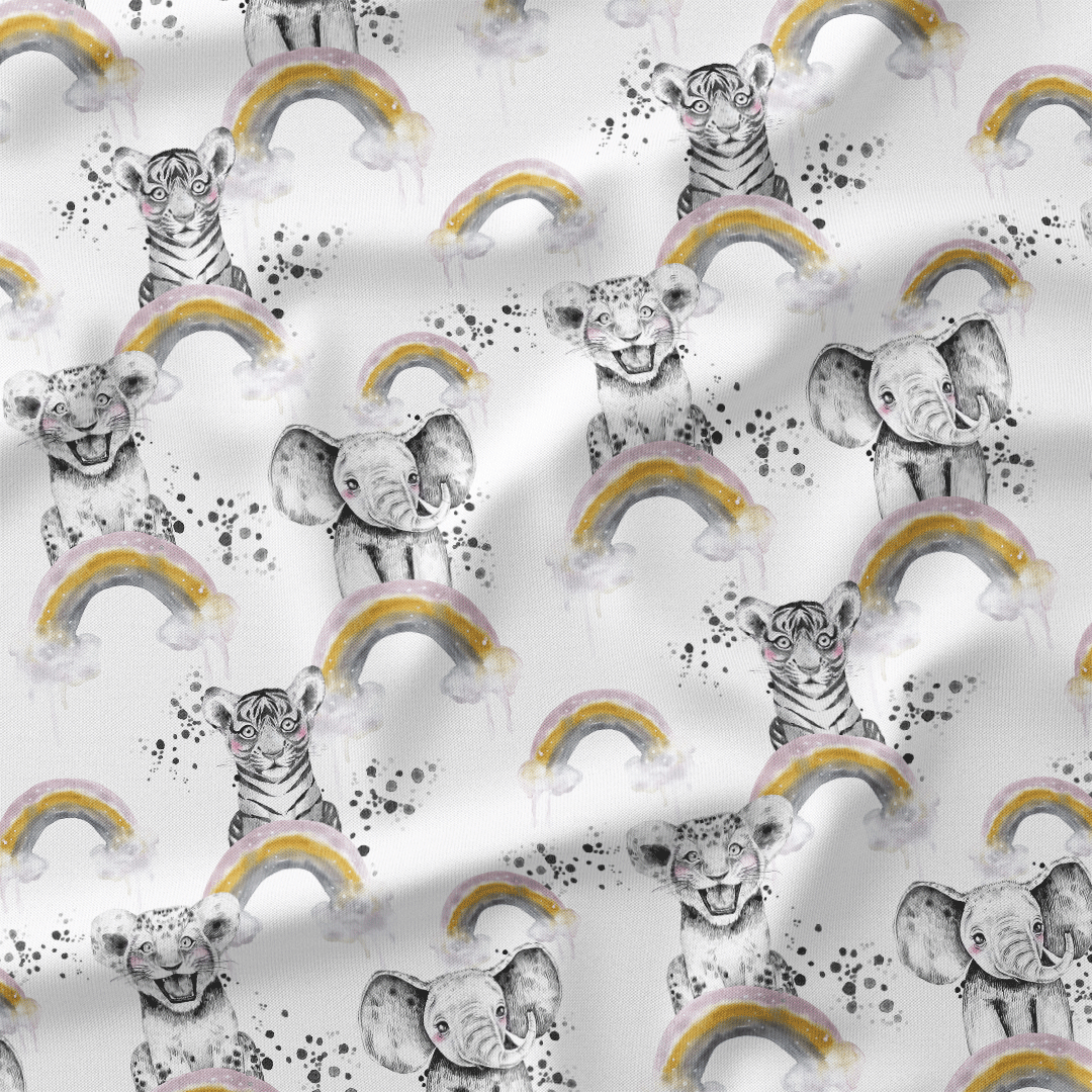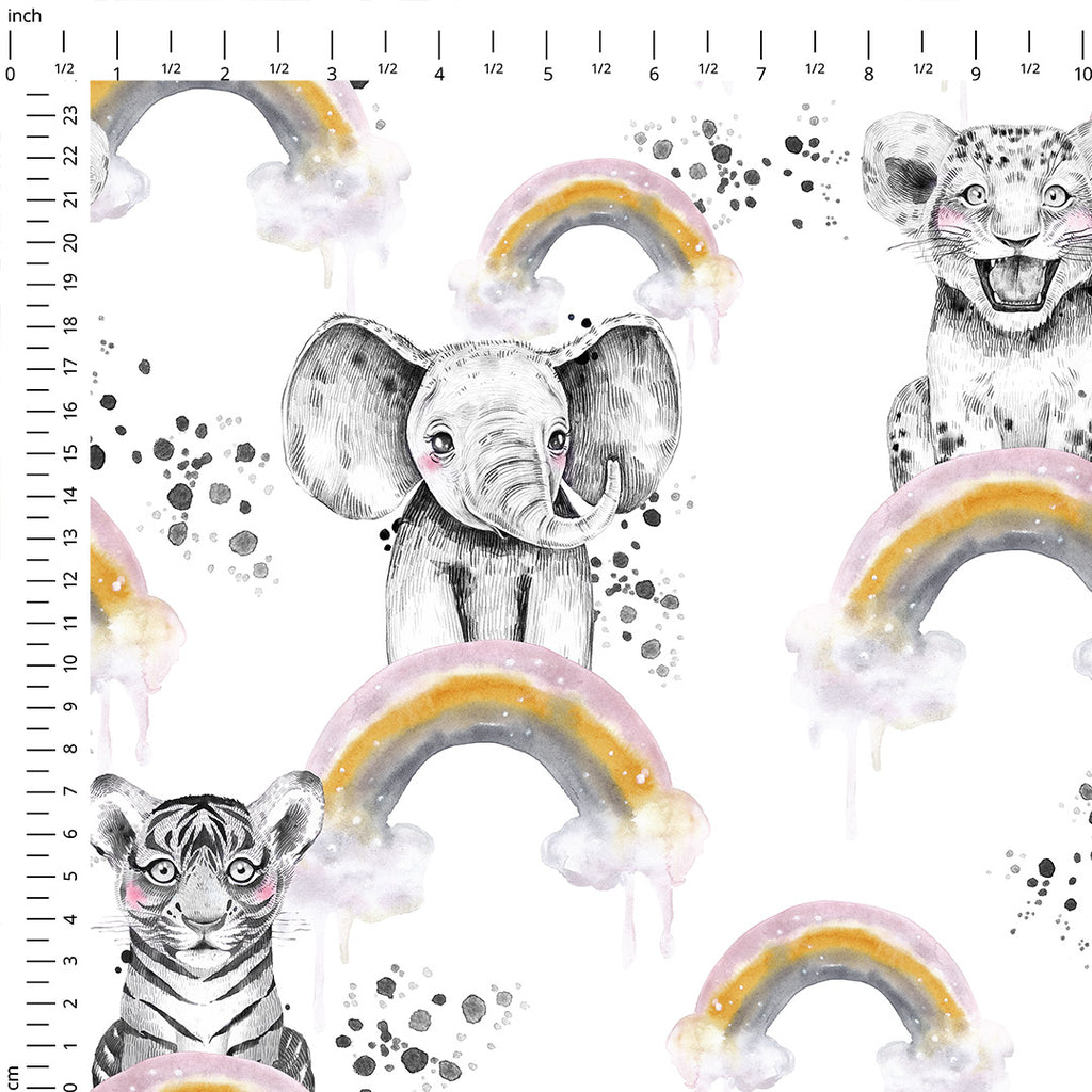 Rainbow Safari Babies White Fabric