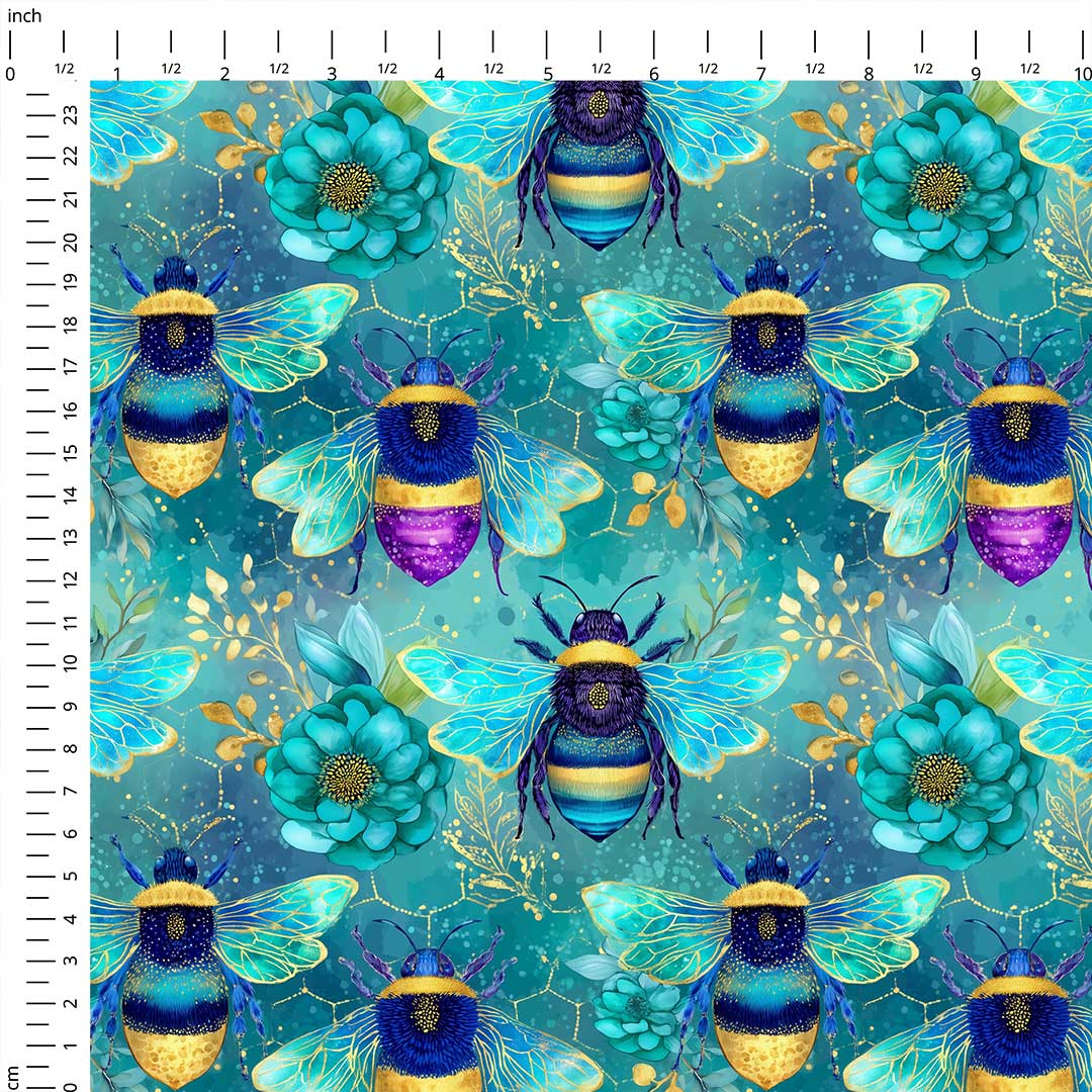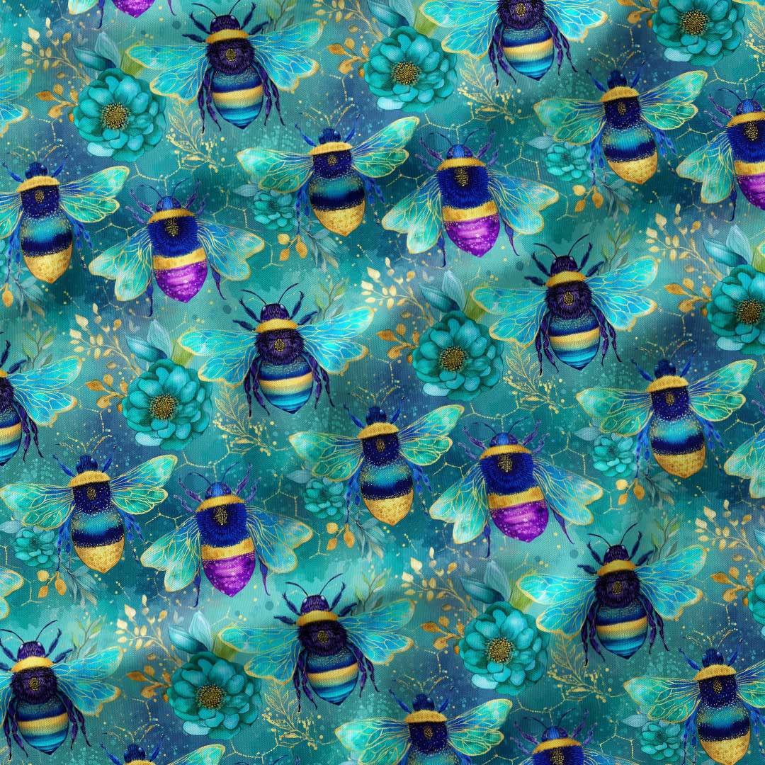 Jewel Bees Blue Fabric