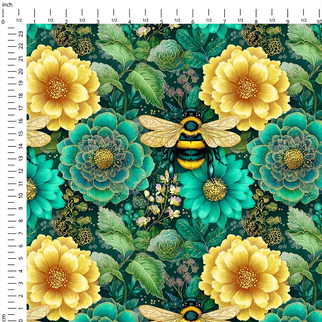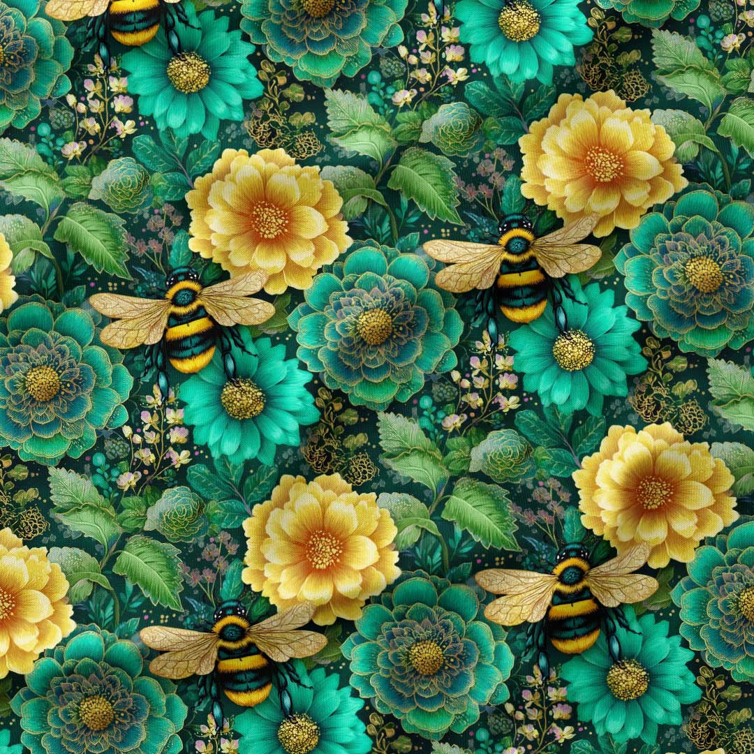 Jewel Bees Green Fabric