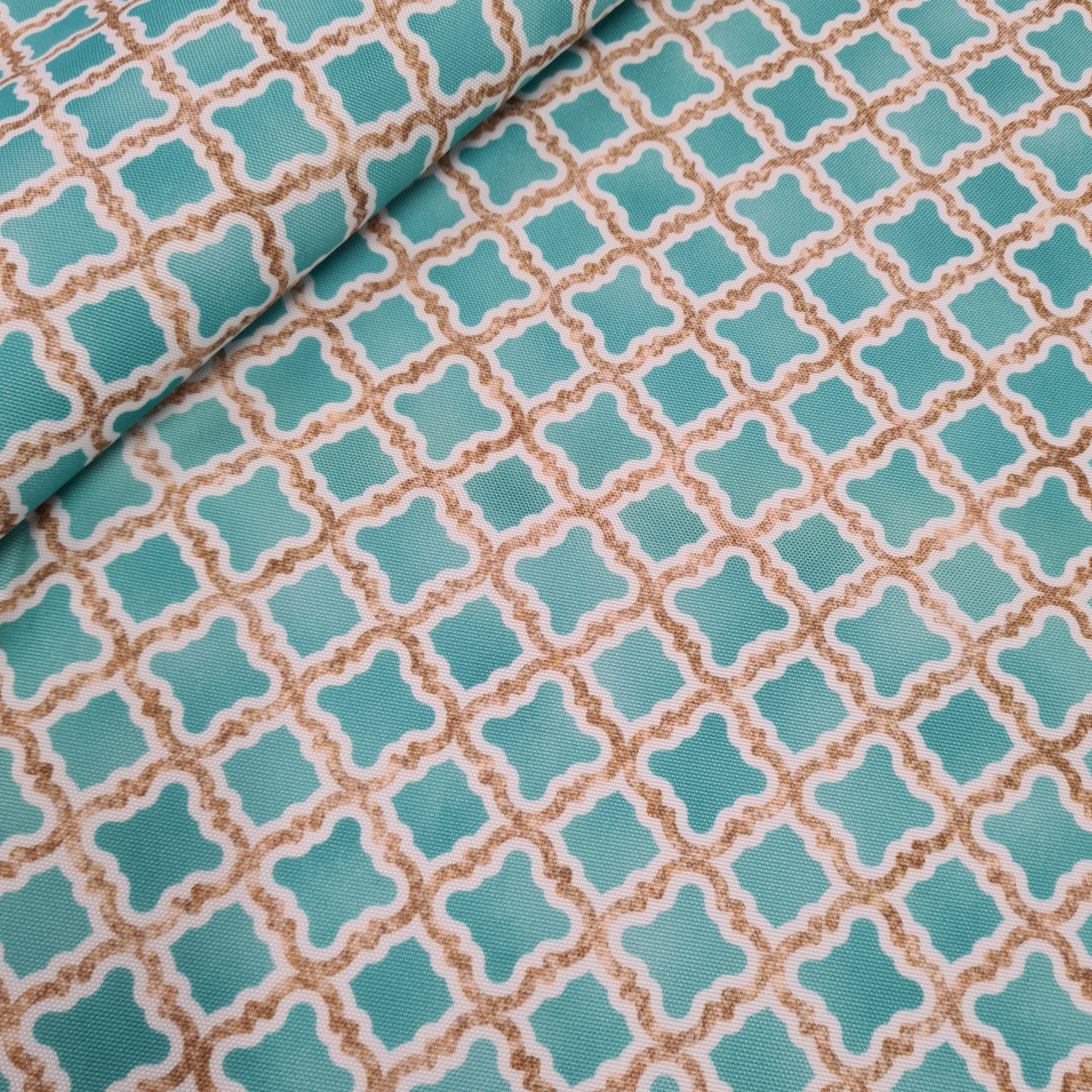 Moroccan Mint Lattice UV Resistant Waterproof Canvas, remnant 50cm
