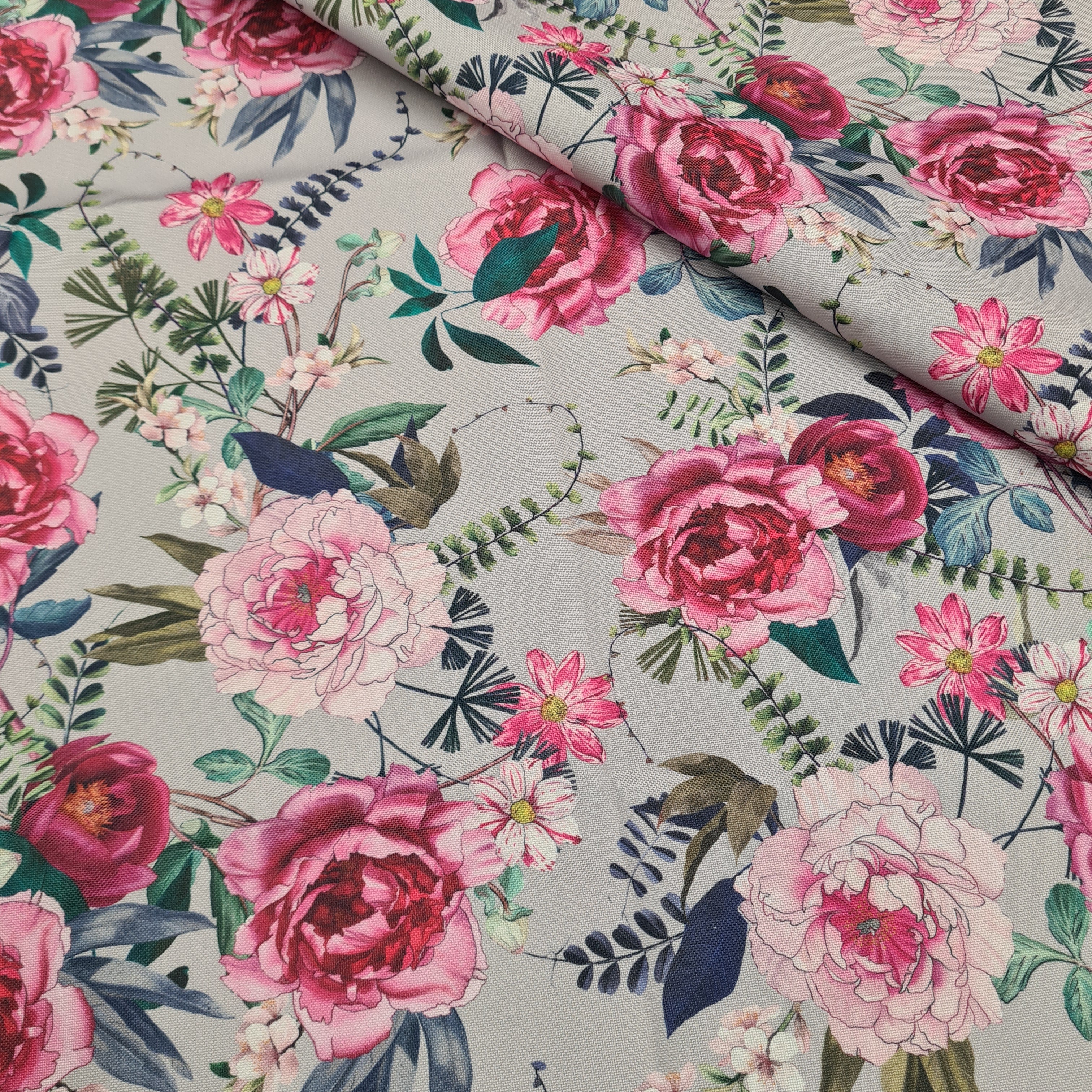 Roses Grey Waterproof Canvas, remnant 1.5m