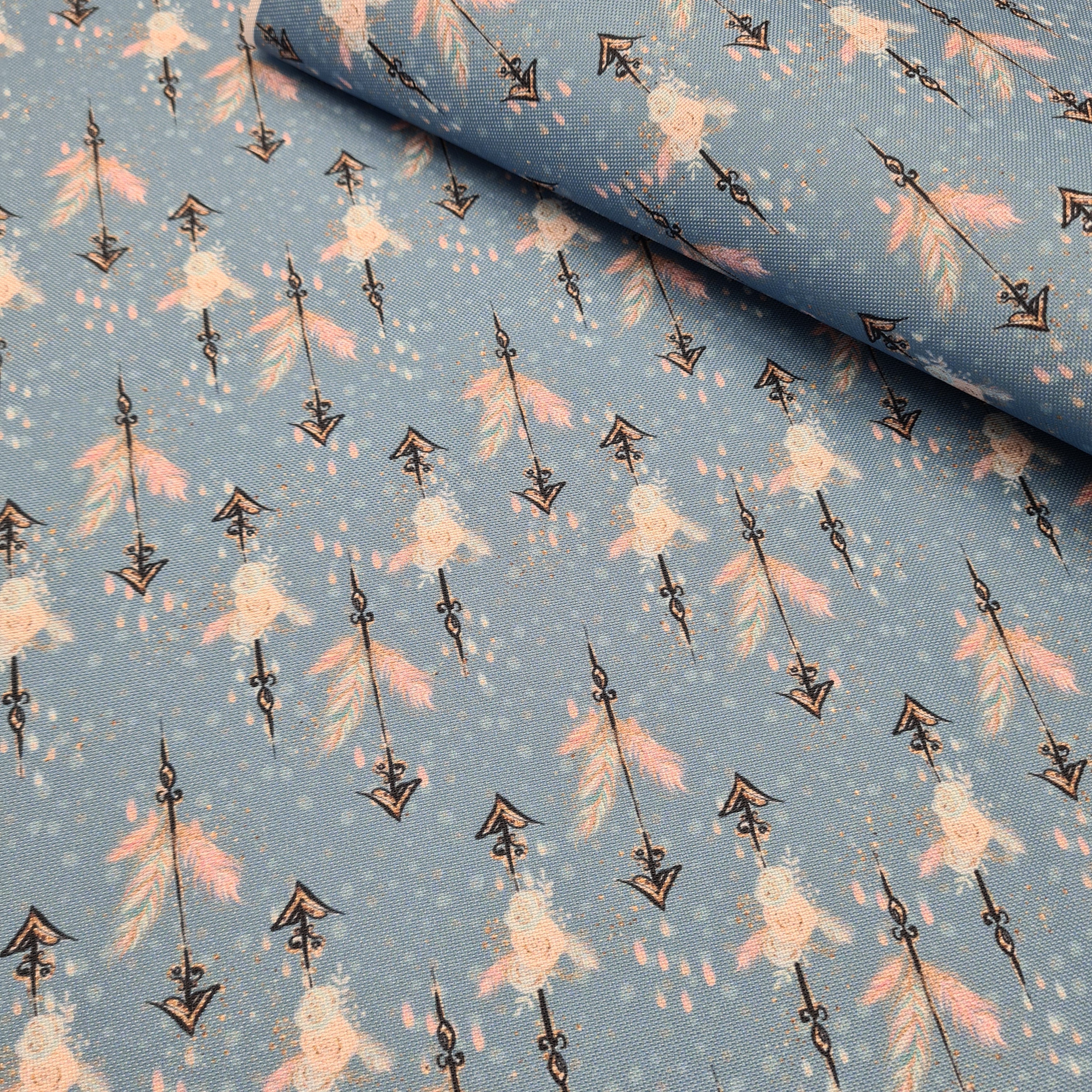Boho Arrows Blue Waterproof Canvas, remnant 50cm