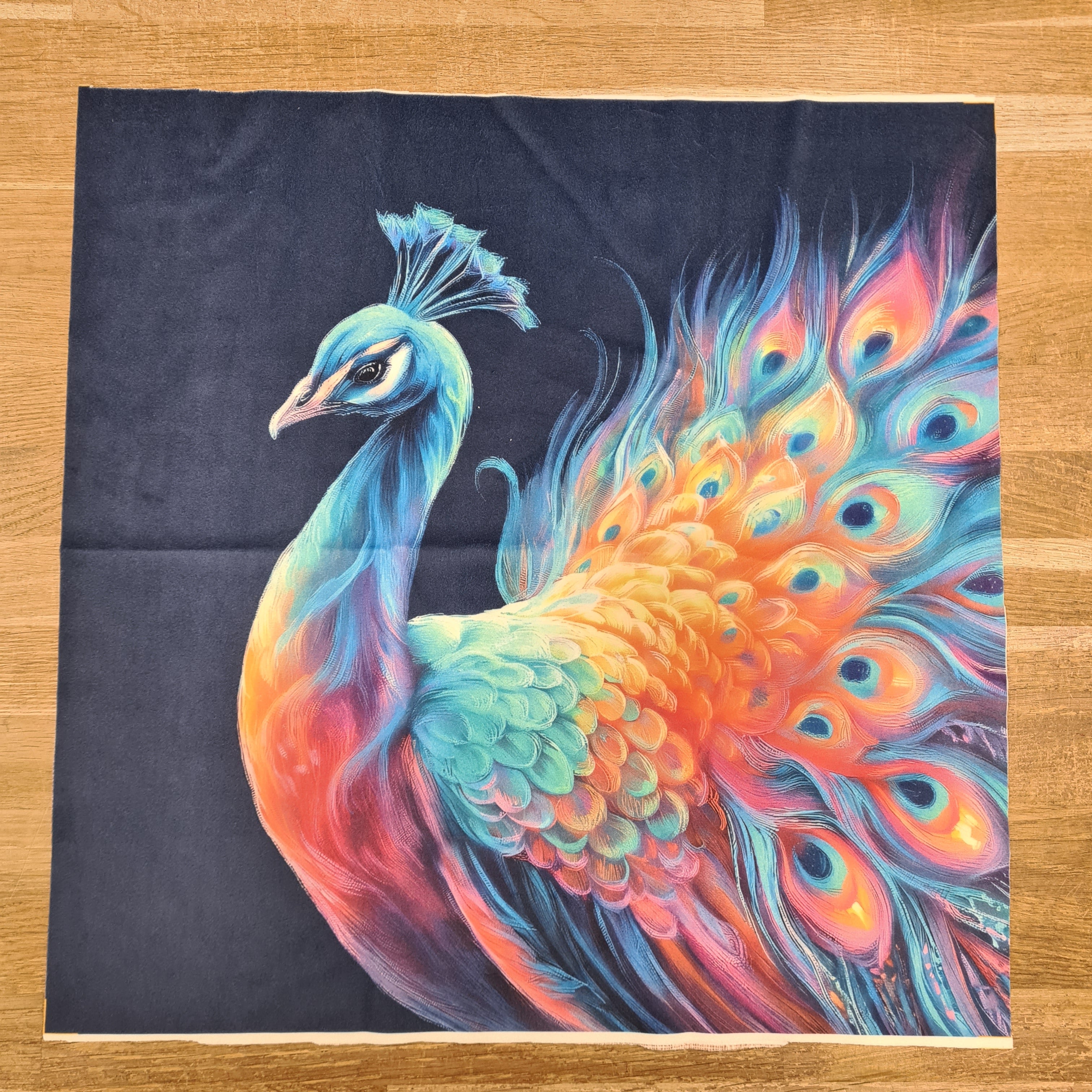 Colourful Peacock French Velvet Cushion Panel 45x45cm is backordered and will ship as soon as it is back in stock.