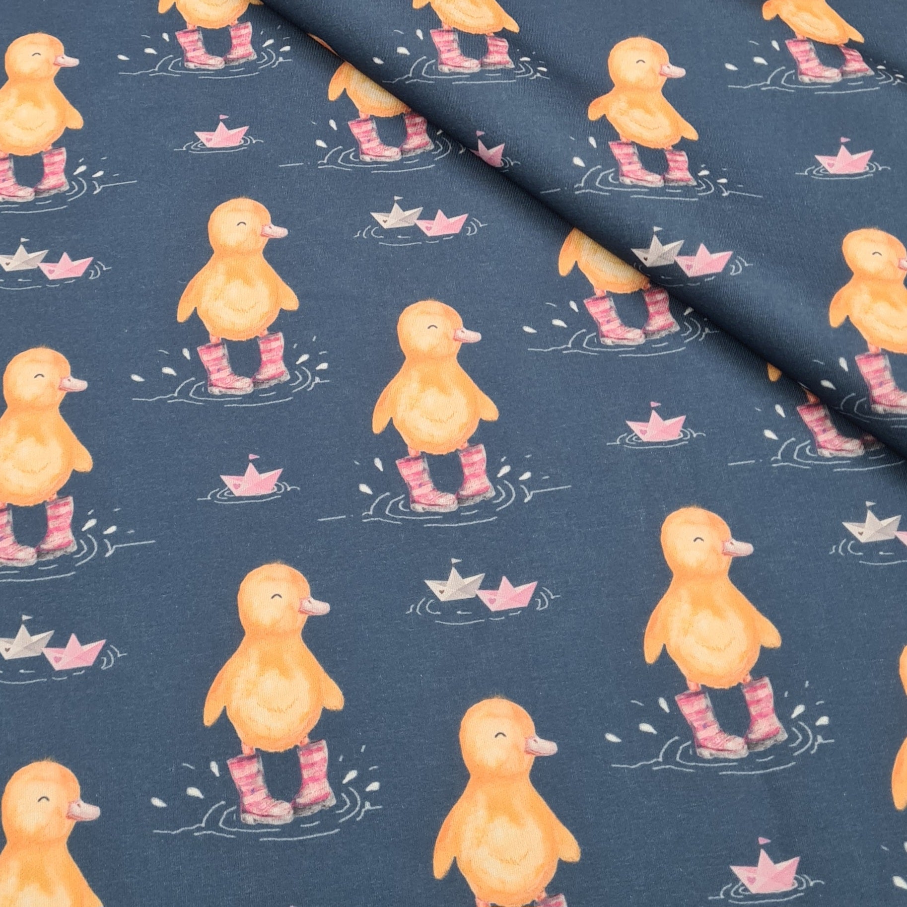 Ducks in Pink Wellies Sweatshirt Jersey, remnant 77cm