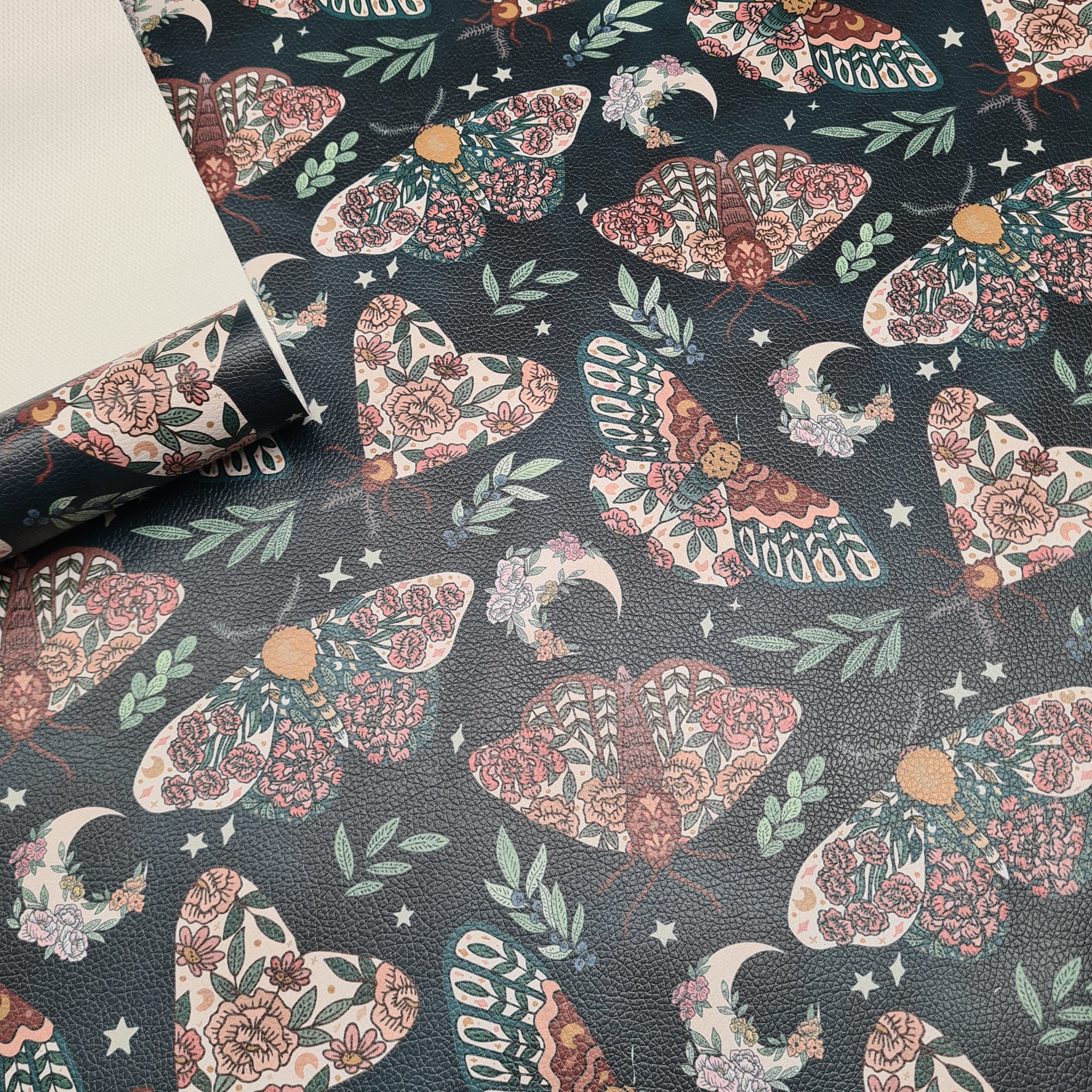 Moths on Green Faux Leather Fabric 50cm is backordered and will ship as soon as it is back in stock.